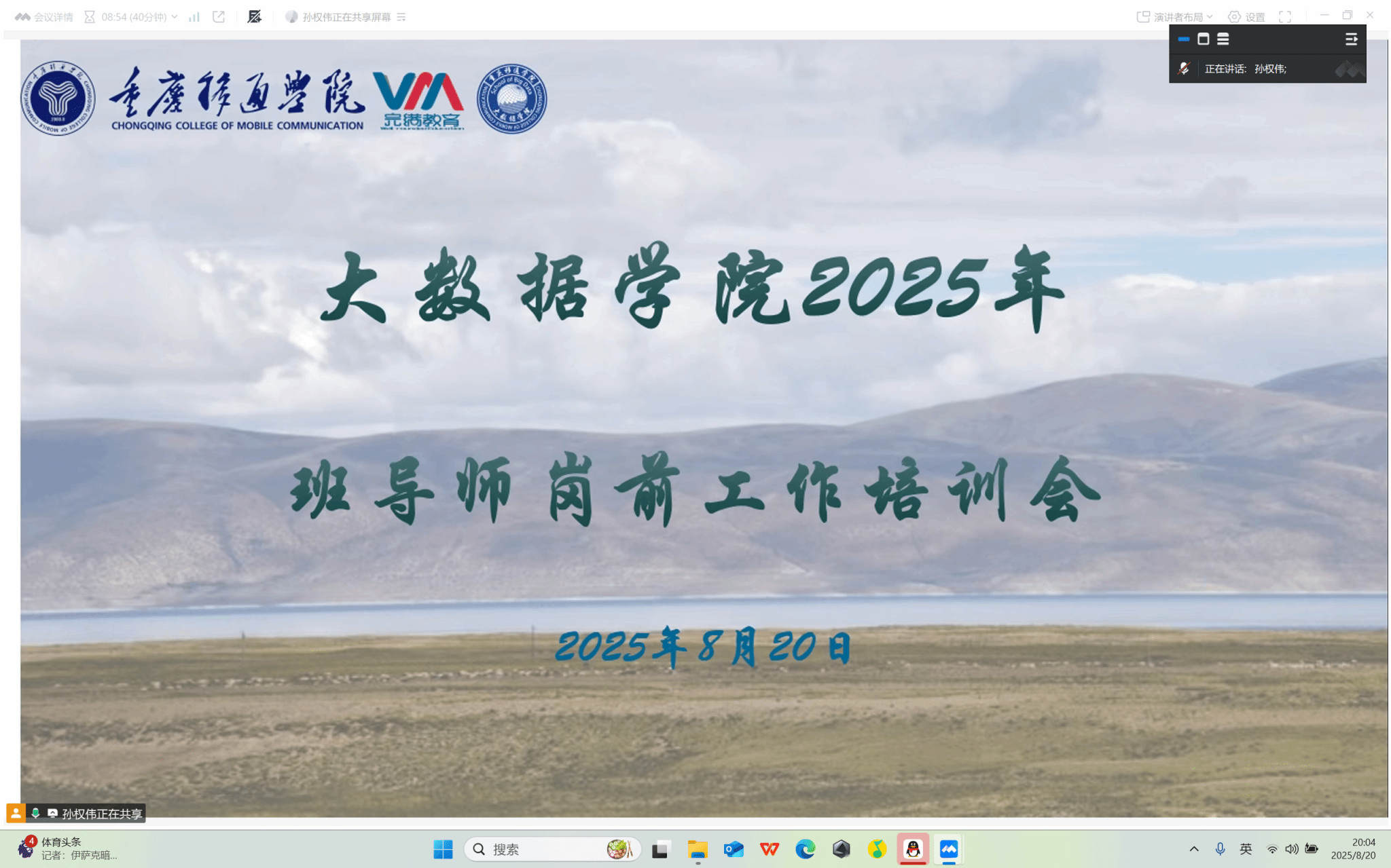 为积极做好新学期开学迎新工作,明确工作职责,顺利有序地推进班导师各项工作,大数据学院于8月20日开展班导师线上岗前培训会。