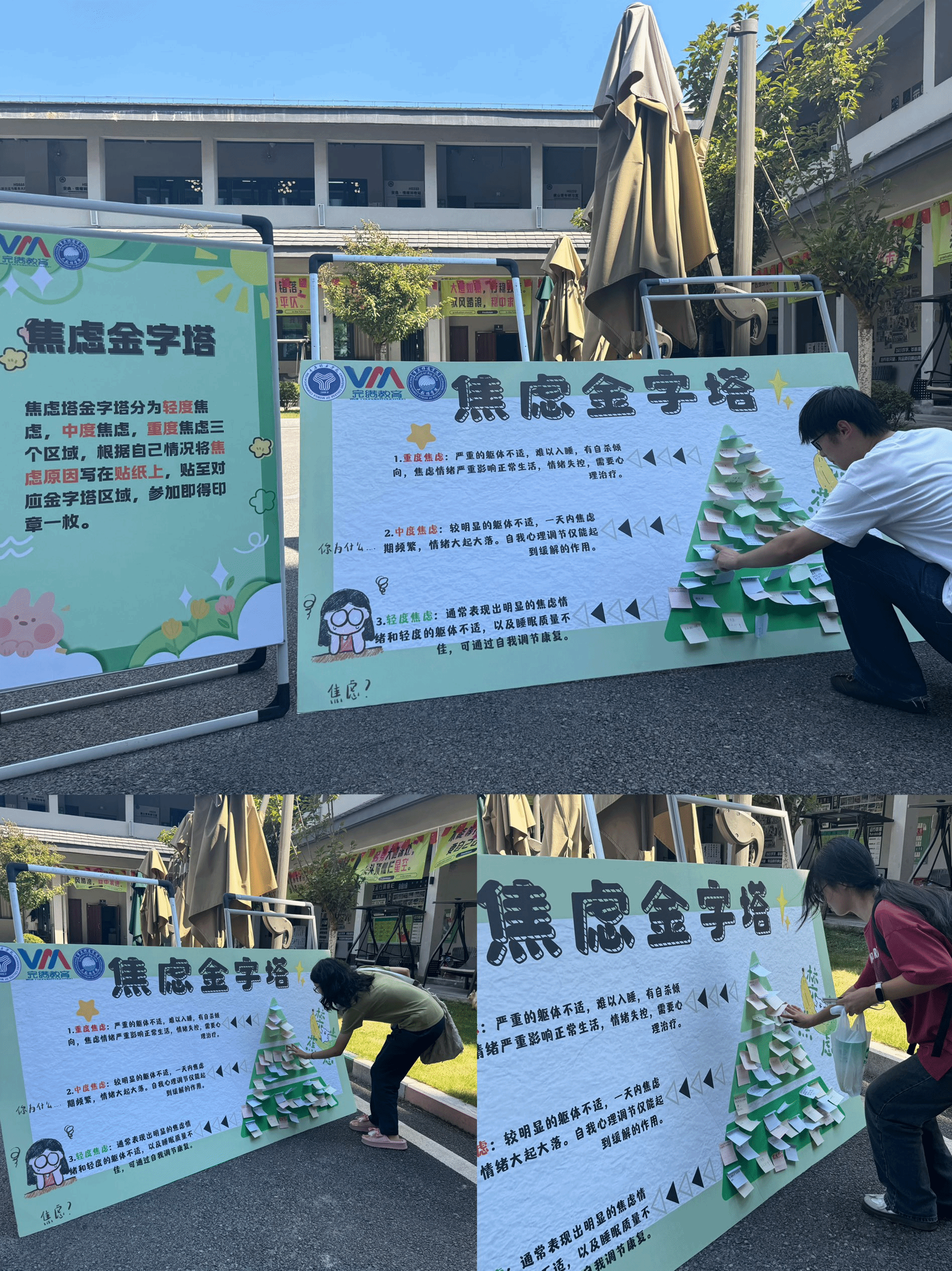 活动将心理健康科普与运动深度融合,设置五大特色环节。在焦虑金字塔与九型人格测试区,同学们认真阅读心理科普内容,直面自身情绪状态。积极填写九型人格测试,陈美琪老师耐心地为同学们解答测试结果。不少同学表示“通过九型人格测试更懂自己,也学到了调节情绪的小知识”。