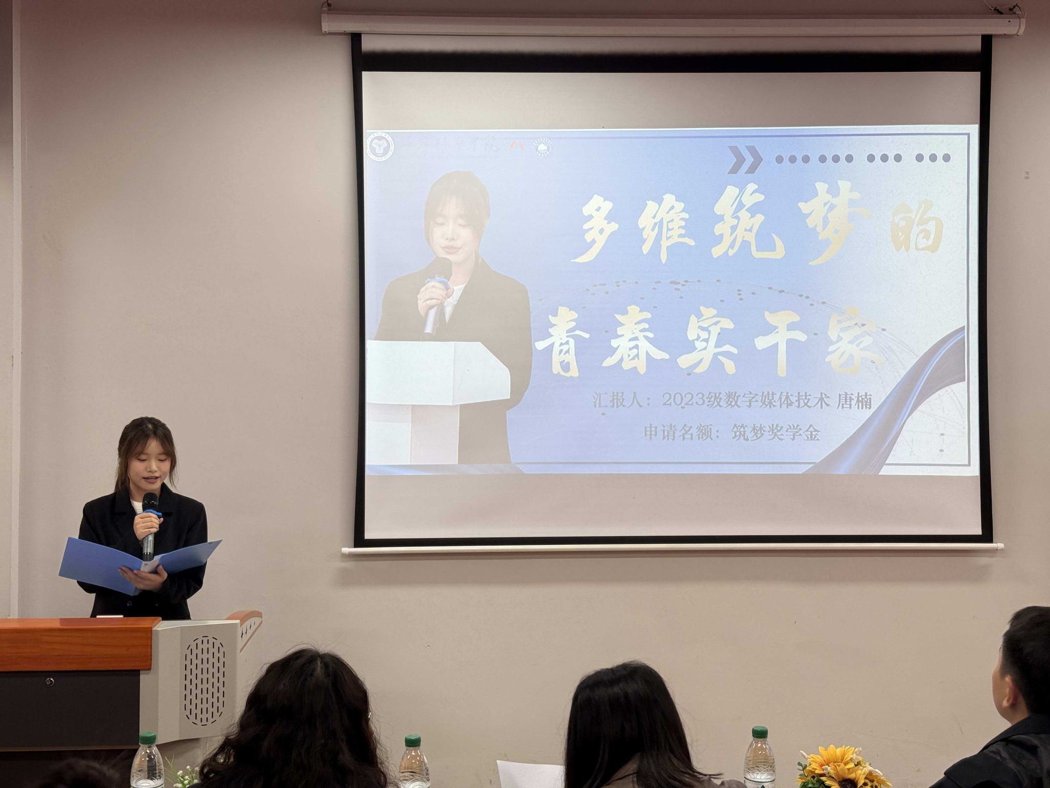 根据学生处相关要求和通知,为严格落实筑梦奖学金“公开、公平、公正”的评审原则,选拔品学兼优的学生,2025年10月31日,重庆移通学院大数据学院在玉棠书院扎堆朋辈空间开展2025年度筑梦奖学金答辩。大数据学院党总支副书记阙小梅、学工办主任李进、团总支书记刘林林和部分辅导员老师担任评委。