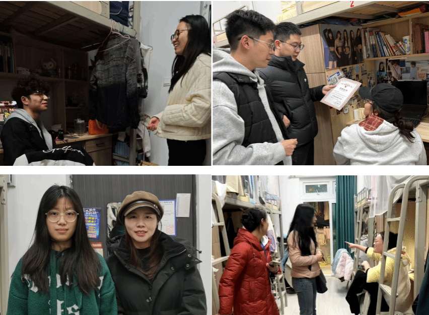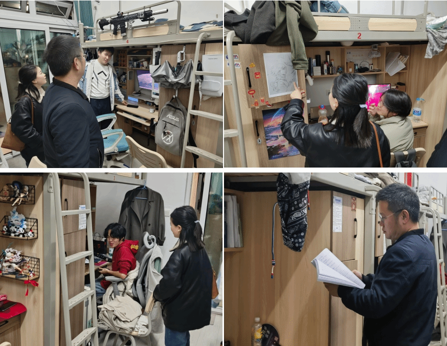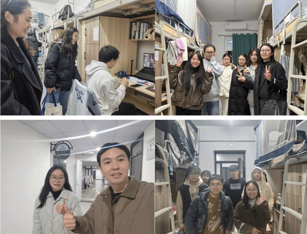 走访过程中,学院领导与辅导员们走进学生的宿舍,与同学们面对面亲切交流。老师们详细询问大家的学习进度、生活适应情况及实际需求,了解大家的兴趣爱好,关心同学们在校园生活学习中遇到的困难。在与学生交谈中,学院领导们鼓励同学们珍惜大学时光,明确学习目标,主动钻研专业知识,注重劳逸结合,积极参与校园文化活动,全面提升综合素养。