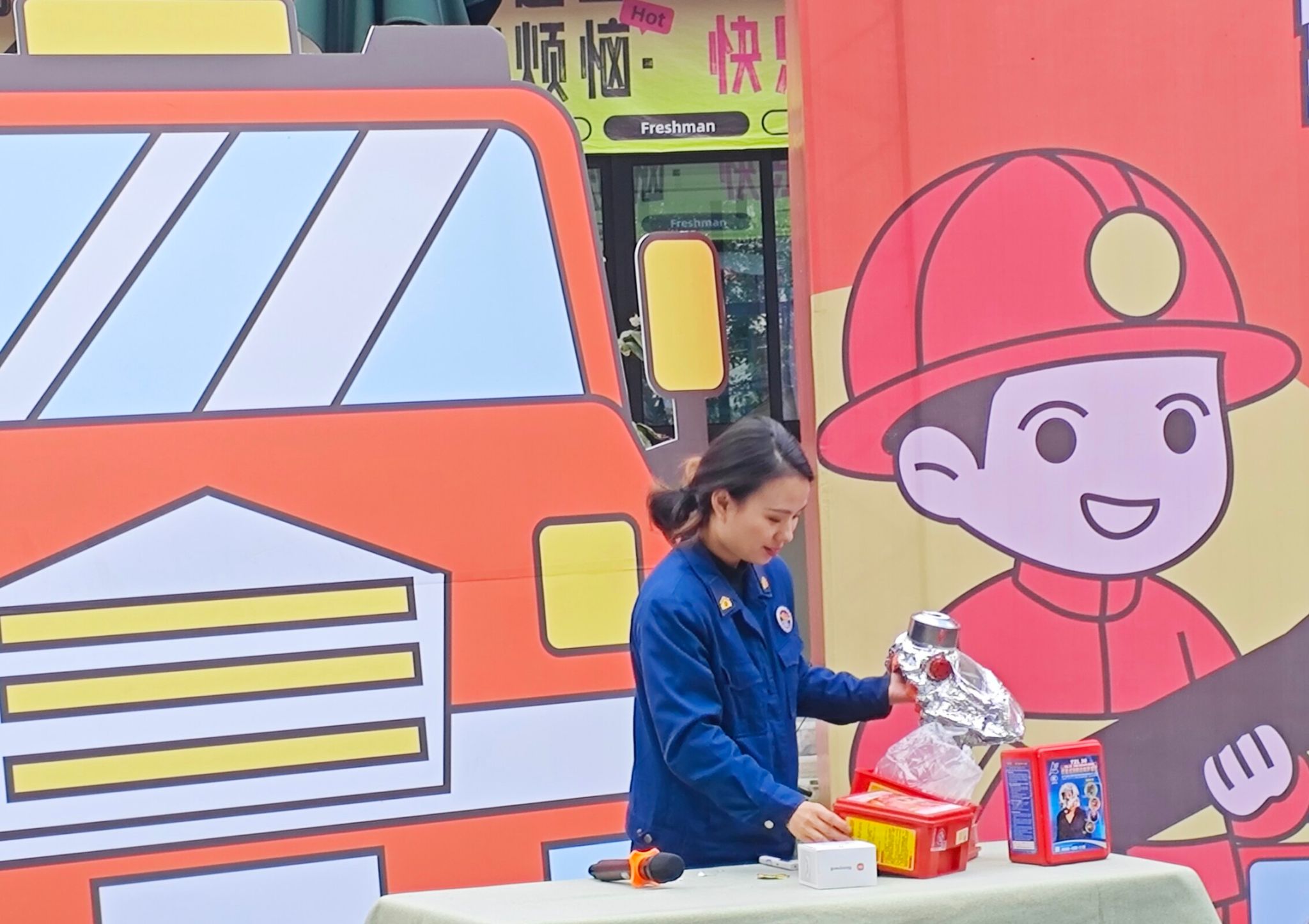11月19日下午,横山书院中庭化身为别开生面的安全教育课堂,大数据学院“笔绘安全蓝图,心系校园平安”消防安全月主题活动活力启幕。活动现场设置知识宣讲区、主题绘画区、消防器材体验区,各区域人头攒动、互动热烈。主题绘画区,同学们俯身长卷,手持彩笔全神贯注勾勒“安全蓝图”:清晰的逃生路线、鲜活的消防员身影,色彩斑斓的笔触间满含对生命安全的理解与敬畏。活动高潮聚焦消防过滤式自救呼吸器的讲解与实操——专业讲解员详细介绍其结构、功能及使用时机后,邀请同学上台体验正确佩戴流程,大家在指导下快速完成操作,切实掌握紧急自救技能要领。