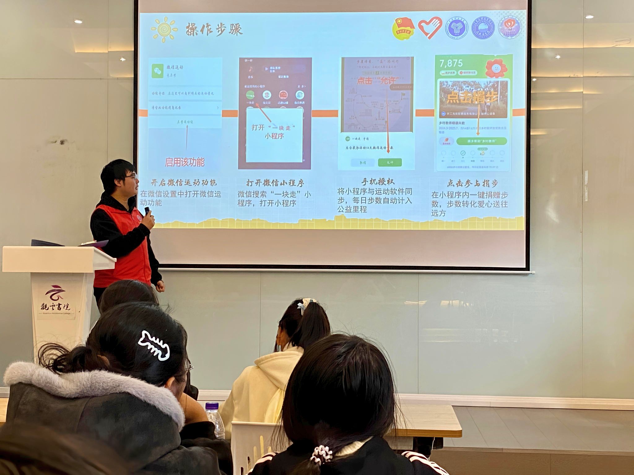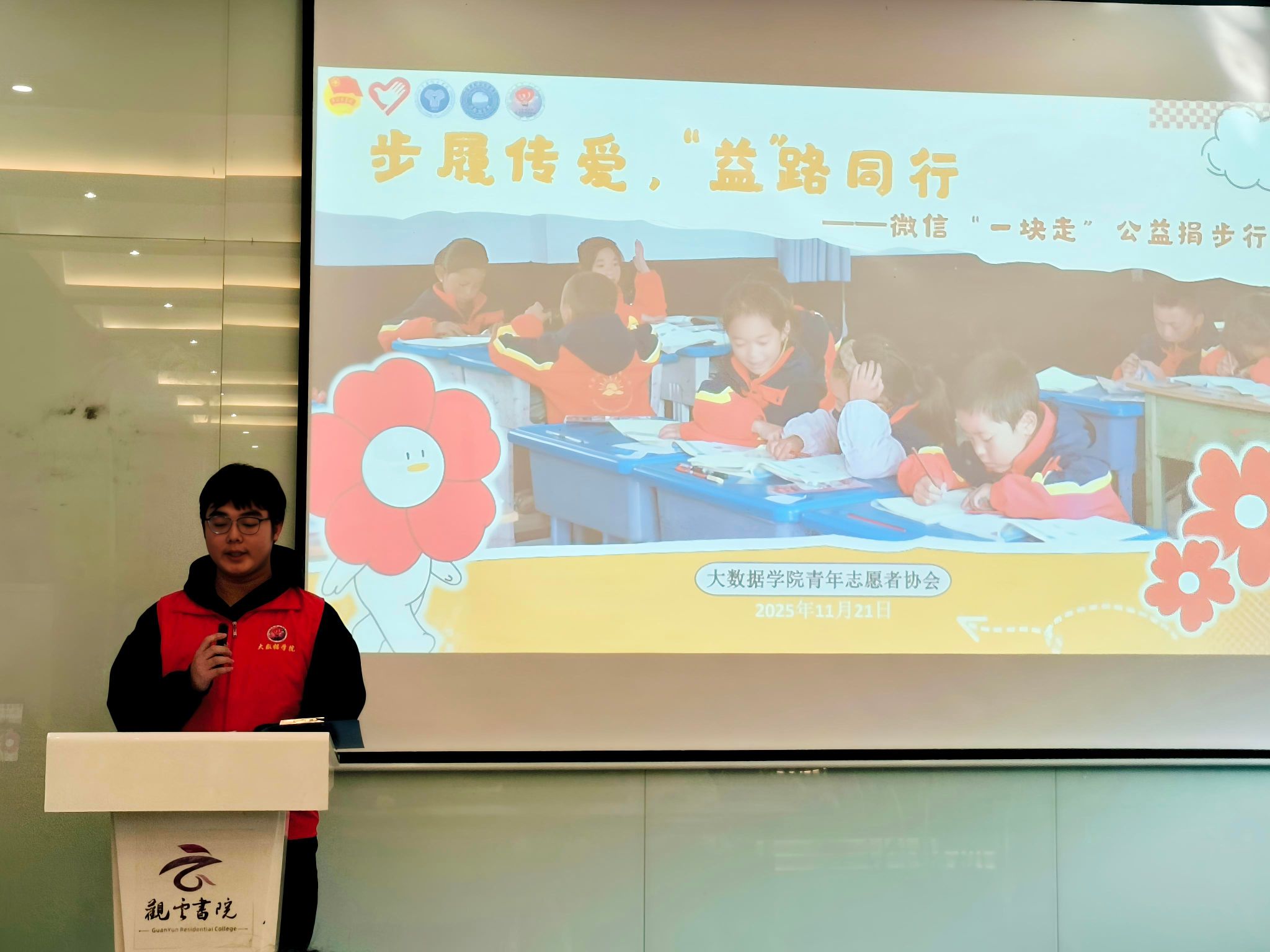 11月21日下午15:00在观云书院冬至多媒体功能室启动的“步履传爱,‘益’路同行——微信‘一块走’活动”,以轻参与打通日常与公益的边界。观察员以陪伴者身份见证:从单人捐步到组队参与,走路被赋予了新的意义;超200万步的捐赠数据背后,是同学对公益从遥远概念到随手可为的认知转变。