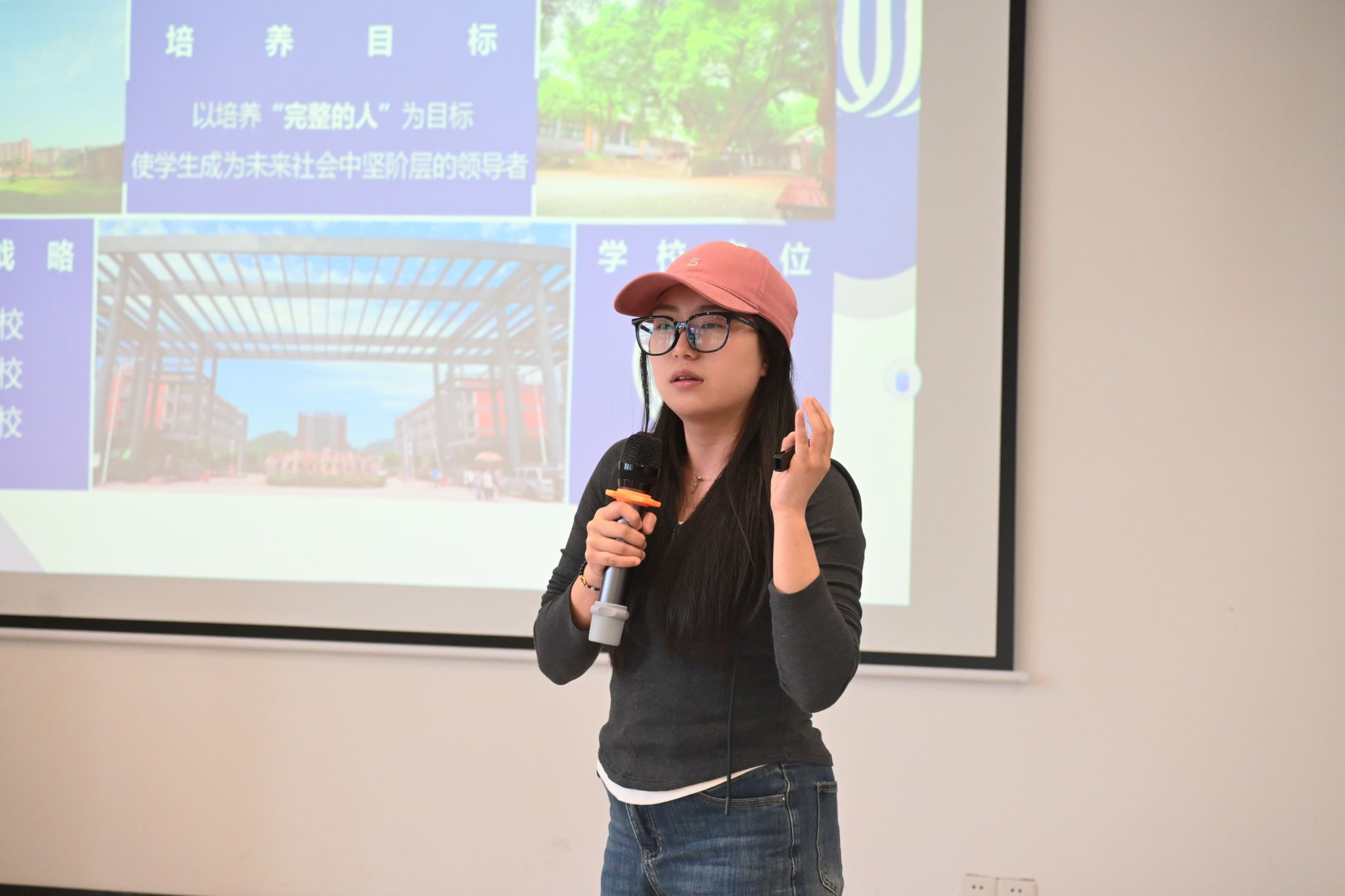 紧接着,团总支书记刘林林老师系统阐述大数据学院学生管理与完满教育工作体系,重点围绕志愿服务、社团活动、竞技体育、艺术实践四大模块,解析“四位一体双院制”人才培养模式的实施路径,强调通过专业化指导和常态化激励机制,着力培育学生的健全人格、协作能力与社会责任感。南江书院综合办主任罗美琪详细解读“书院·社区共享与朋辈互助”育人机制,阐述其对学生领导力与综合素养的提升作用。国际教育学院潘彦含老师则介绍了学校本硕直通计划的发展方向,宣传学校在国际化人才培养上的蓝图建设。