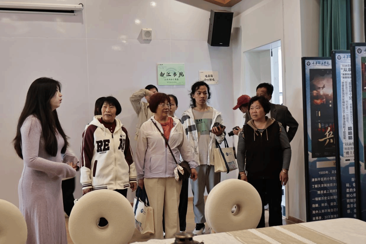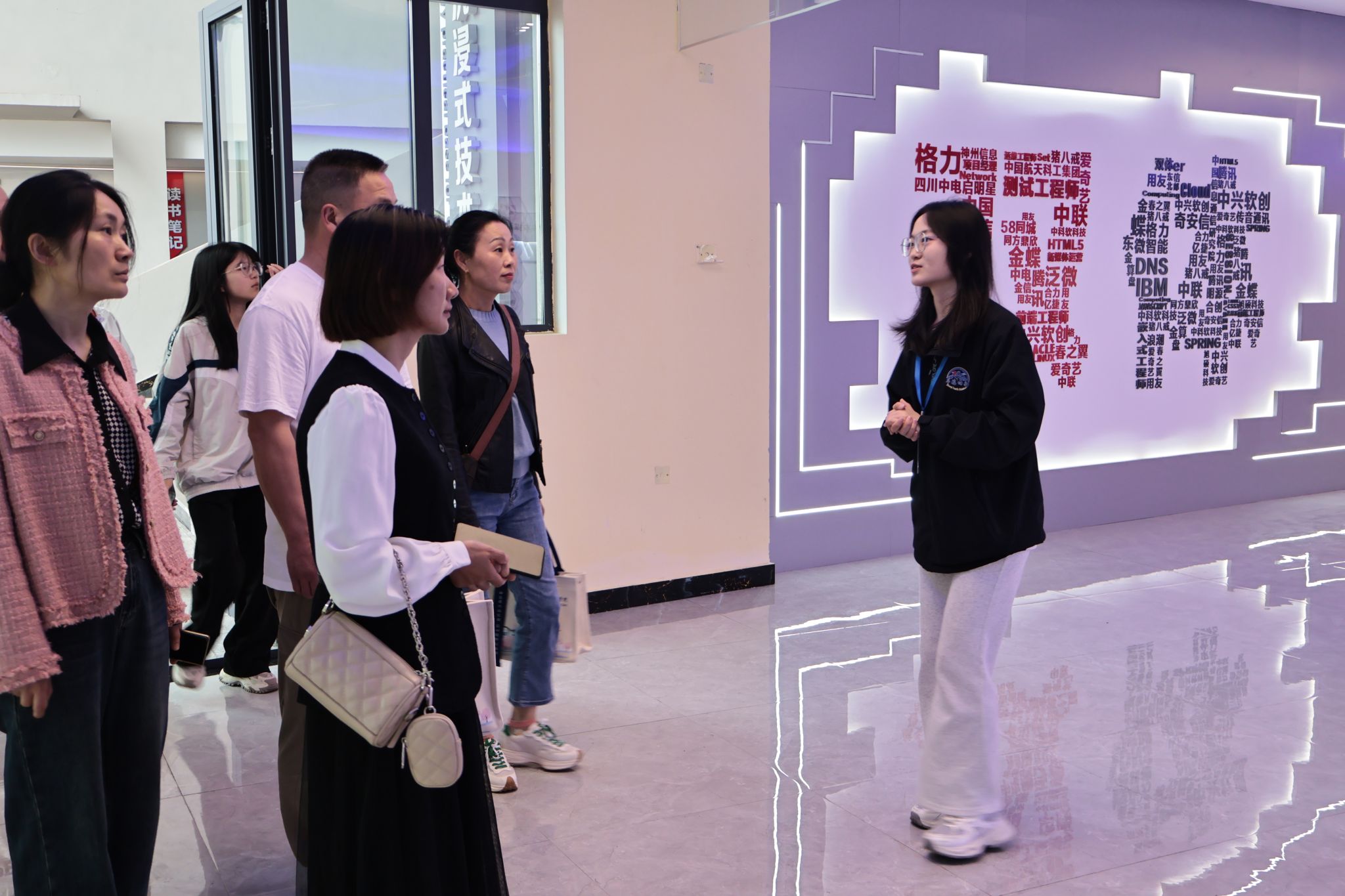 光影流转间,家长们随讲解员穿行于丁山书院、南江书院、双体软件精英产业学院之间,感受书院的家文化育人氛围,感受双体学院的精英培养风采。丁山书院内,“十二星座”主题空间与社区共享场域交相辉映,创意工坊与社交沙龙勾勒出个性培养的多元场景;南江书院的各个功能室里,社区、共享、互动的环境设施,营造出思辨气息,书院制育人理念在互动装置中具象呈现;双体学院产教融合实训基地内,企业真实项目案例与智能模拟系统生动展示。当连廊转角处的年轮展墙掠过视线,家长们在移步换景中完成认知拼图,他们在书院建筑群中感受“学院+书院”双轨育人的创新模式。