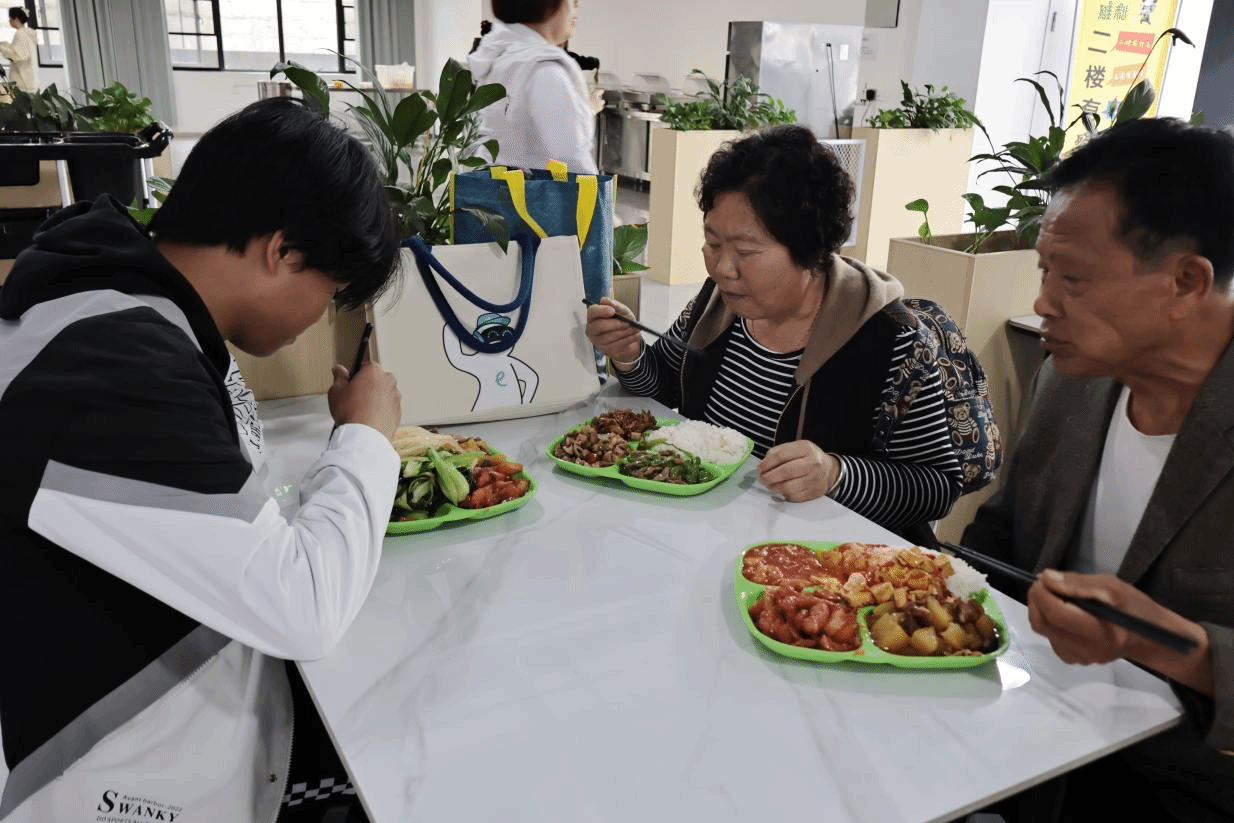 午间时分,学生陆续下课,南州食堂、东溪食堂飘散着诱人香气,辅导员、家长和学生们围坐用餐。从食材溯源到烹饪操作均通过标准化监管,家长们感受到了食堂严格的安全管理流程。餐台陈列的菜品色泽鲜亮、口味醇香。家长们品尝后纷纷称赞:“食材新鲜,制作有安全保障,味道也很好!”餐后,学生陪同家长参观书院功能室,共享静谧午休时光。
