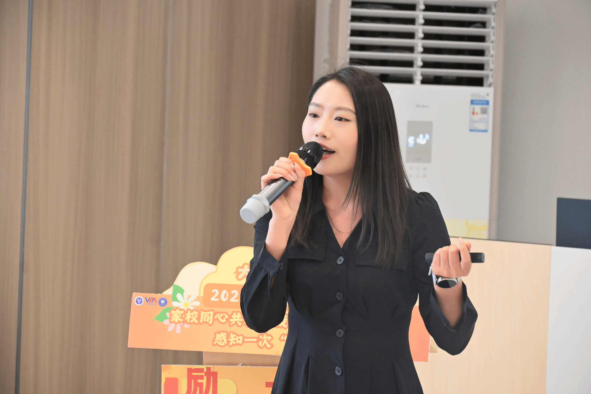 在家校交流环节,2024级数字媒体技术专业学生代表何林潞同学分享成长感悟时,深切地谈到,学校完满教育通过搭建多层次实践平台,帮助青年学子在专业实践、社团活动、公益服务中认识自我、突破边界,帮助每个人实现个性化发展。2024级数据科学与大数据技术专业学生家长代表鲁荣在发言时提到,家长开放日的活动让家长们沉浸式做了次学生,参与校园开放日时深切体会到了“以学生发展为中心”的育人理念,特别感谢学院家校协同育人,并呼吁全体家长与学校学院保持或者加强沟通交流,共同为学生的成长护航。在茶话会交流环节,家长朋友们和现场领导、老师们充分交流,围绕日常生活、学生管理、专业学习、职业规划等方面,大家交流得热烈融洽,真正搭建了家校对话的桥梁。