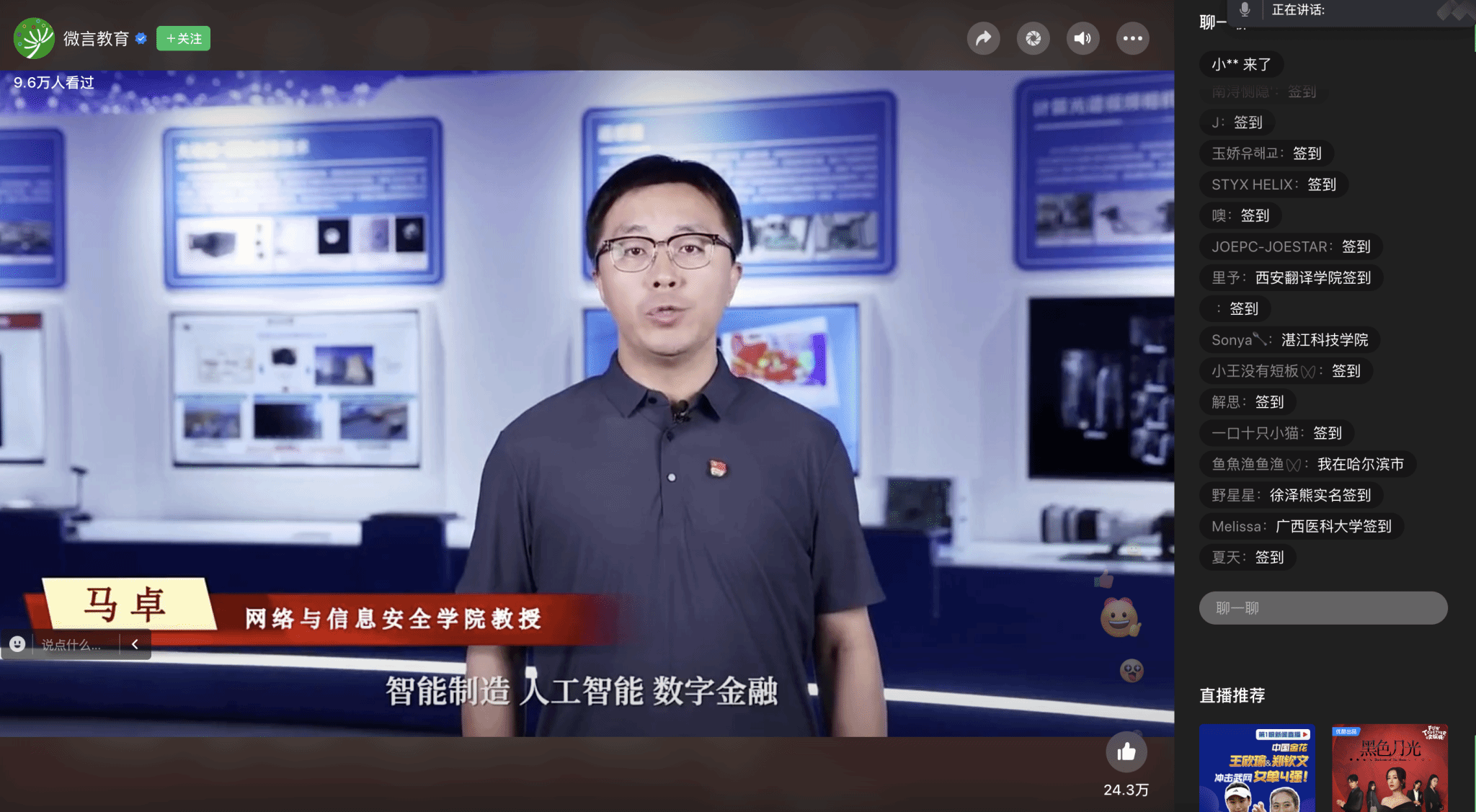本次微党课由教育部思想政治工作司精心策划,教育部宣传教育中心具体实施,邀请了来自北京邮电大学、电子科技大学、西安电子科技大学、北京信息科技大学、重庆邮电大学和深圳职业技术大学等六所知名高校的领导、专家学者及优秀学生代表,围绕网络强国建设的时代背景、战略意义、高校角色与使命等进行了深入浅出的讲解。