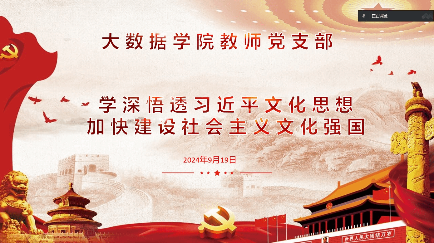 9月19日下午4点,为进一步共同深刻学习领会习近平文化思想的丰富内涵,大数据学院全体教师党员参加线上学习活动——学深悟透习近平文化思想,加快建设社会主义文化强国。