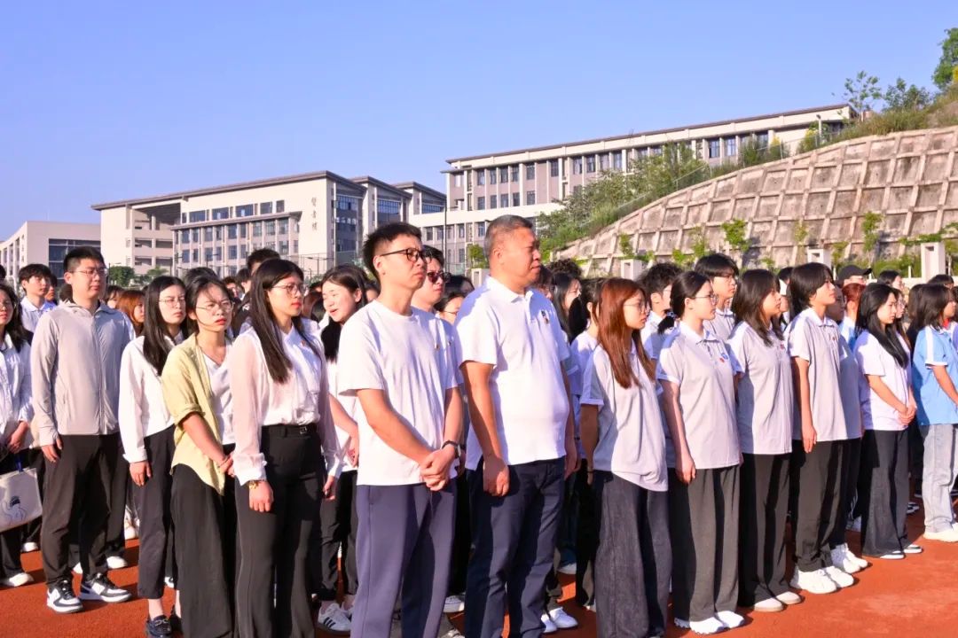 为深入践行“为党育人、为国育才”初心使命,构建“大思政课”育人格局,厚植青年学子家国情怀,2025年5月12日7:20,由重庆移通学院綦江校区学生工作处(武装部)、校团委主办,大数据学院承办、綦江校区国旗护卫队协办的“国旗下的思政课”主题教育活动在朝霞映照的田径场隆重举行。本次活动以“筑牢信仰之基,凝聚奋进力量”为主题,将思政教育融入庄严的升旗仪式,为师生呈现了一堂涤荡心灵的爱国主义公开课。