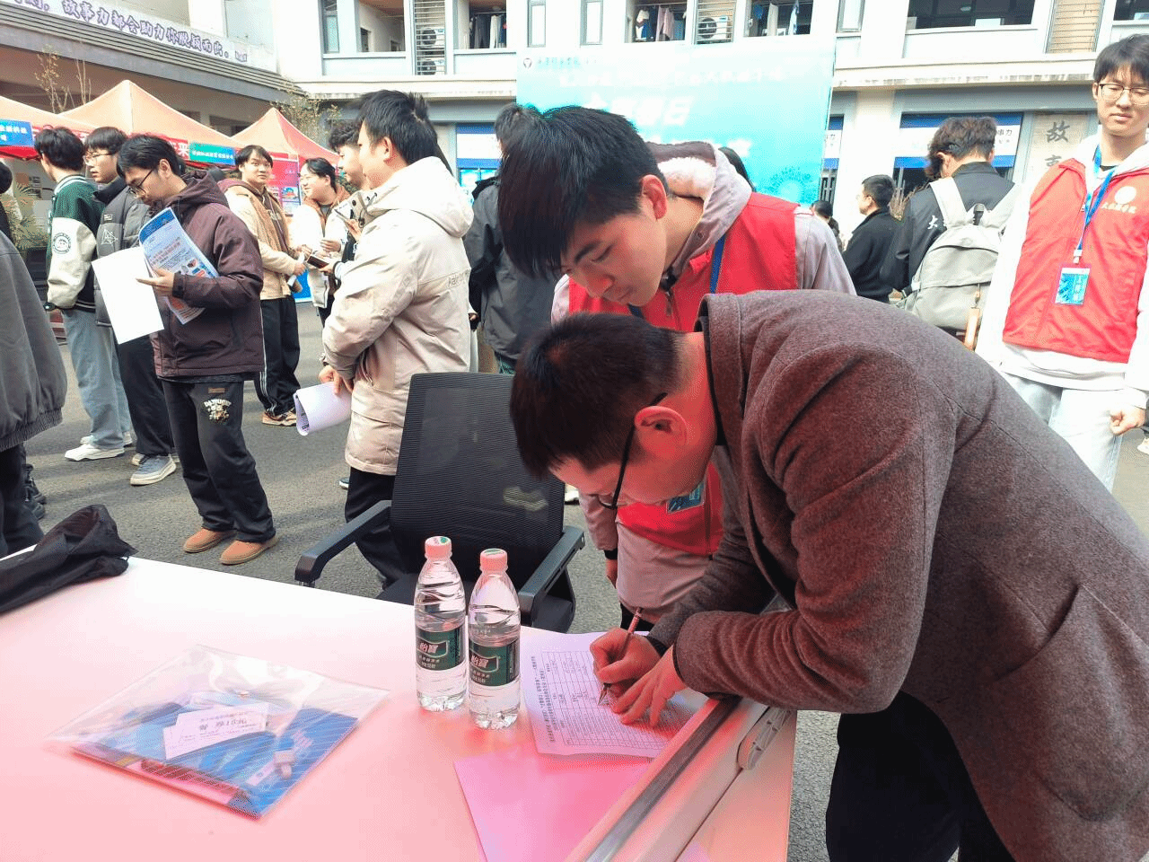 10:30,双选会正式拉开帷幕。随着参与者大批涌入,志愿者们始终活跃在维护秩序的第一线。通过清晰的指示路牌和志愿者的热情引导,毕业生们能够迅速找到目标企业的位置,极大提高了求职效率。活动过程中,志愿者们不仅为企业人员提供水源,还时刻关注现场设施的整洁与秩序。当有求职者面露迷茫时,志愿者会主动上前询问其专业及求职意向,并推荐合适的企业。志愿者的热情服务如同春日的暖阳,为现场增添更多温暖与活力,也让毕业生们在求职路上感受到关怀与支持。